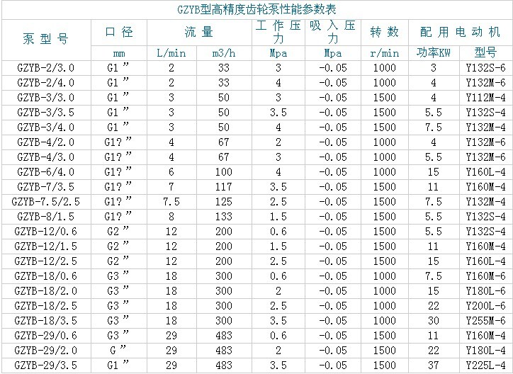 GZYB型高精度齒輪泵全部零件均采用碳鋼結構和特合金結構鋼制造,經先進的熱處理方式具有耐磨性,不出現回轉零件的拉毛和膠合現象,泵在高壓工作時,效率高、噪聲和振動低、運轉平穩、壓力穩定。